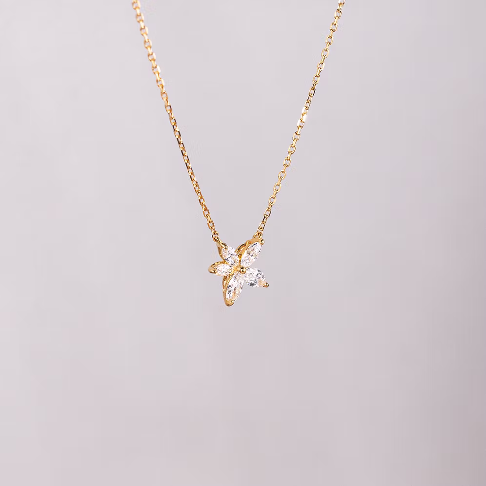 A delicate celebration of light and form, Bloomé captures the fleeting beauty of a flower in full bloom. Each piece is crafted with five petal-like diamonds — marquise and pear-shaped stones arranged in perfect harmony — radiating gentle brilliance from every angle.