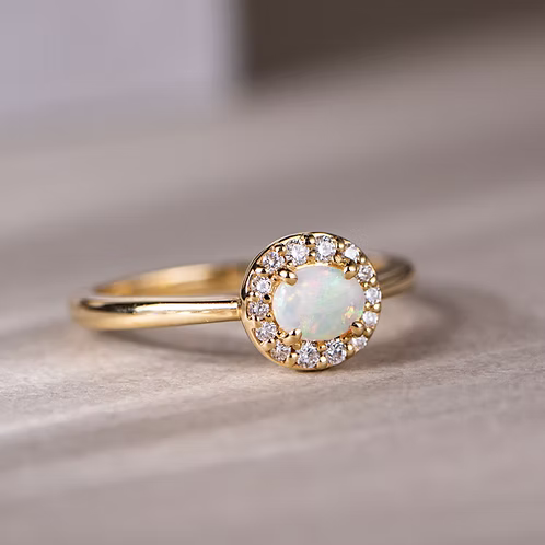 The perfect balance of whimsy and luxury, the Bon Bon Opal Halo Ring is a radiant choice for those seeking a unique and vibrant expression of style.