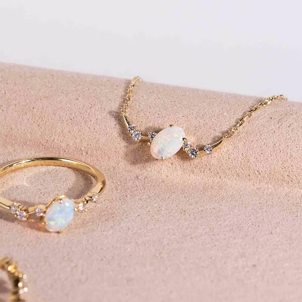 Introducing the exquisite Comète Opal Necklace, our newest creation adorned with the captivating October birthstone, Opal.