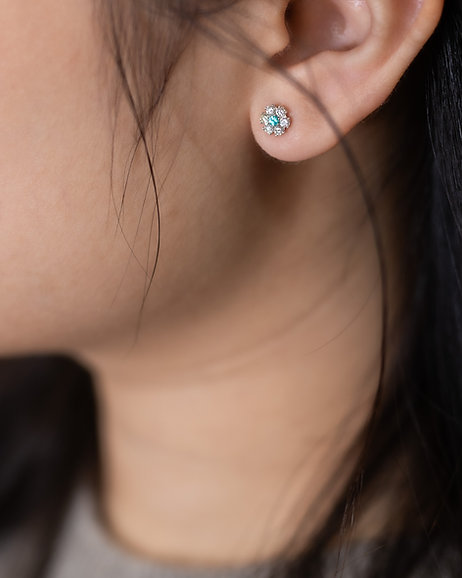 A radiant bloom of brilliance—Rivora captures the beauty of nature in a floral-inspired design. At its heart, a vivid Paraiba Tourmaline glows with its signature neon-blue hue, encircled by delicate diamond petals that enhance its brilliance. Set in platinum, these earrings embody elegance and vibrancy, bringing an exquisite touch of color and light to any occasion.