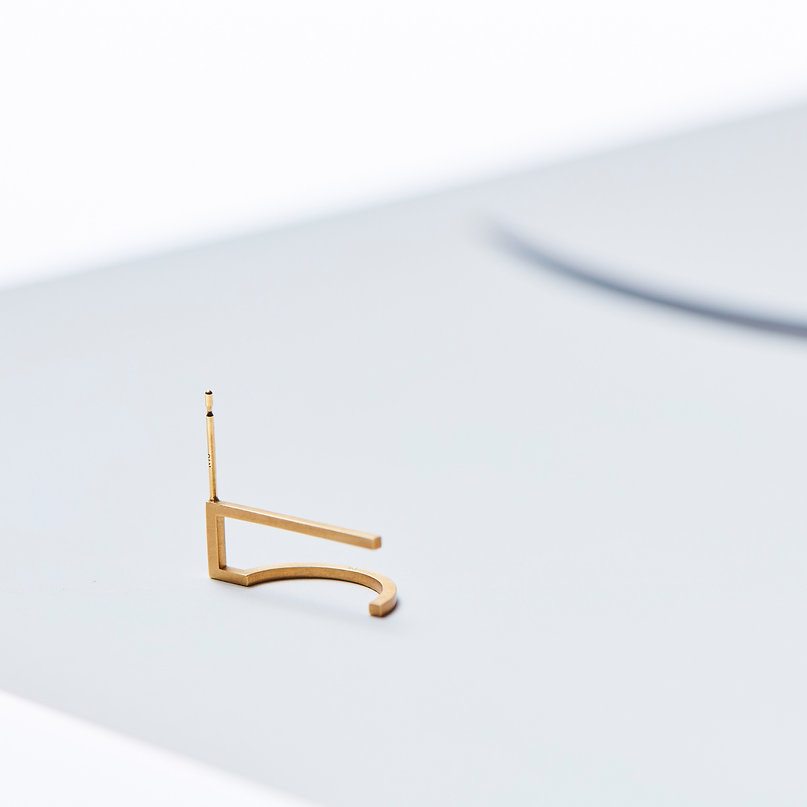 filum Signum collection – abstract single-sided earring. A series of jewelry that explores the flow of lines suspended in mid-air. Every piece is created with thoughtful strokes of the drawing hand and occasionally accented with pearls. The jewelry take on different forms along with the changing perspectives of the viewer. As every piece is one of a kind, the excitement lies in putting together your very own asymmetrical pair.