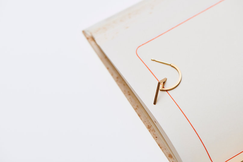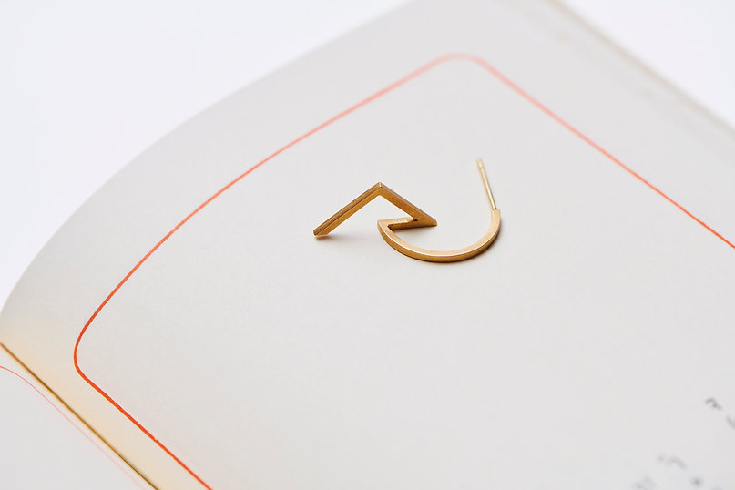 filum Signum collection – abstract single-sided earring. A series of jewelry that explores the flow of lines suspended in mid-air. Every piece is created with thoughtful strokes of the drawing hand and occasionally accented with pearls. The jewelry take on different forms along with the changing perspectives of the viewer. As every piece is one of a kind, the excitement lies in putting together your very own asymmetrical pair.