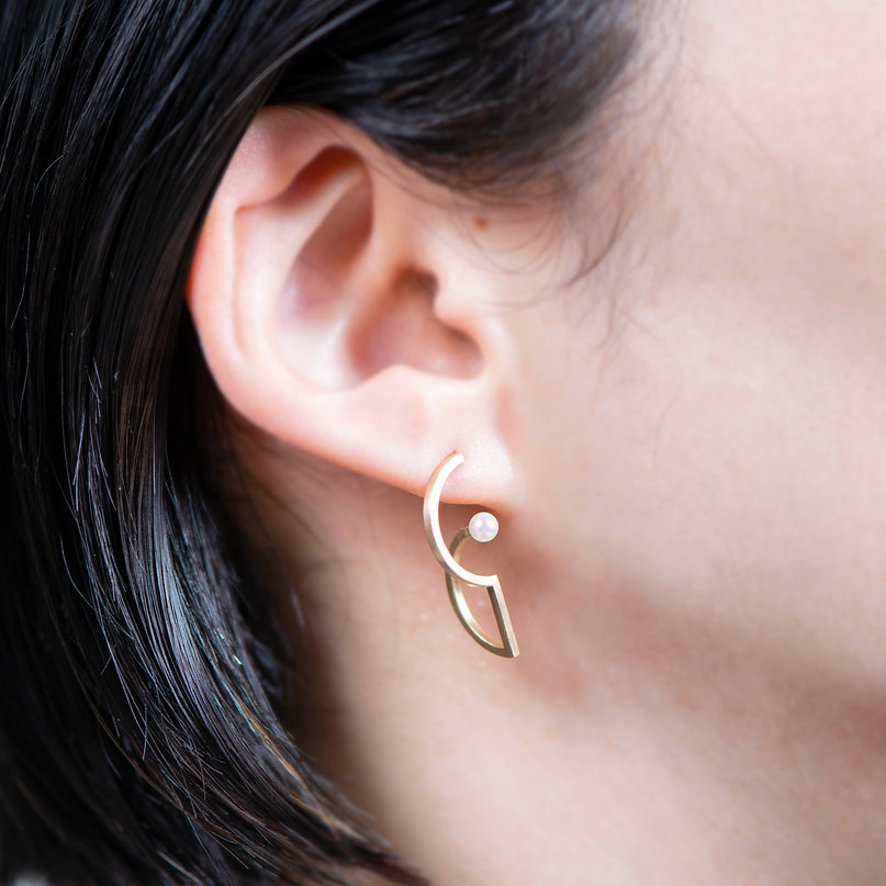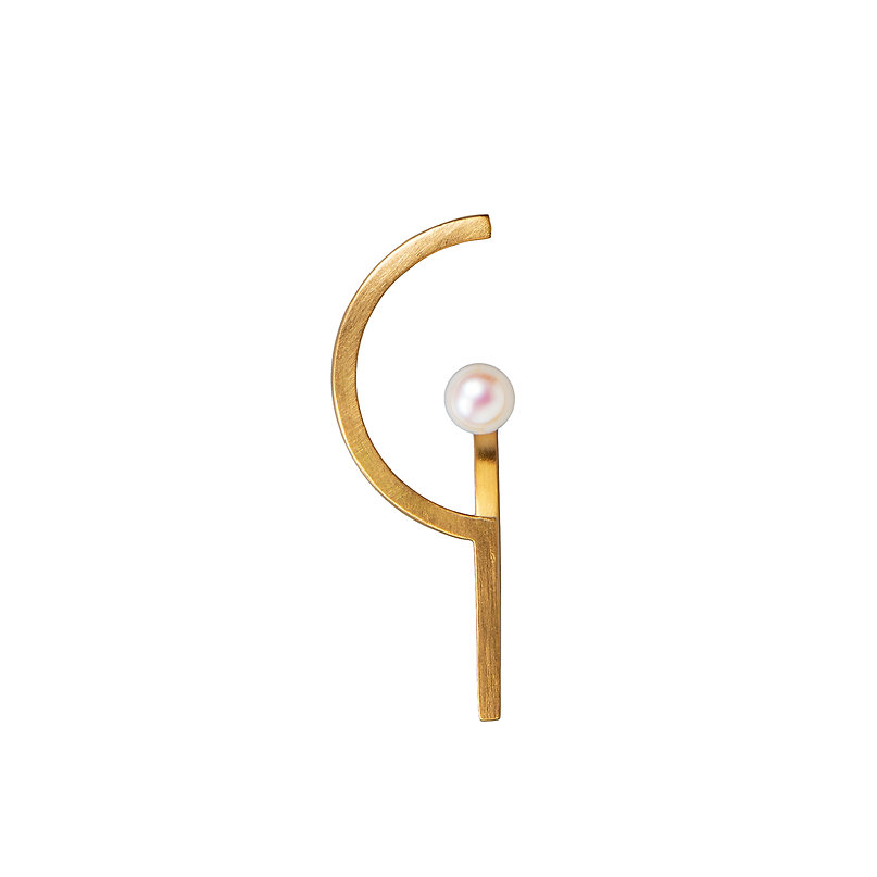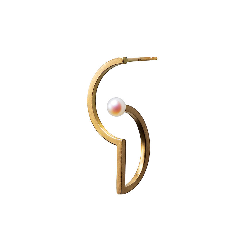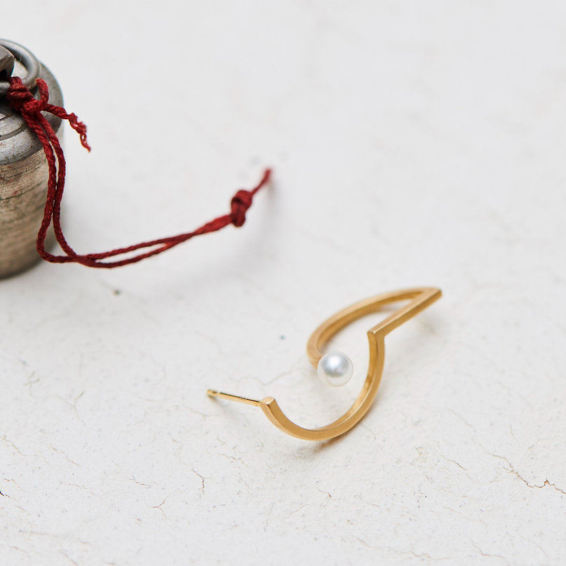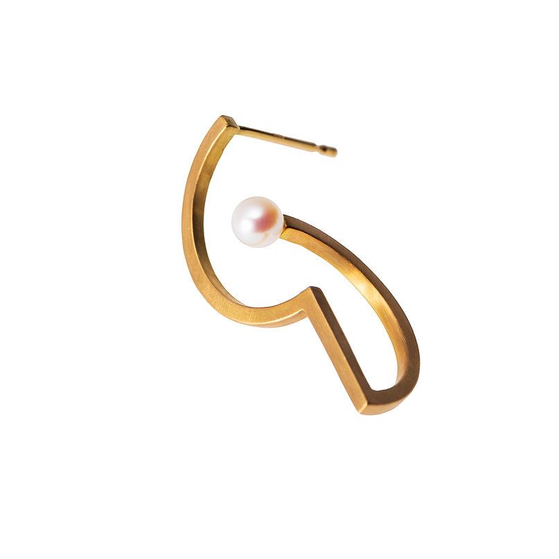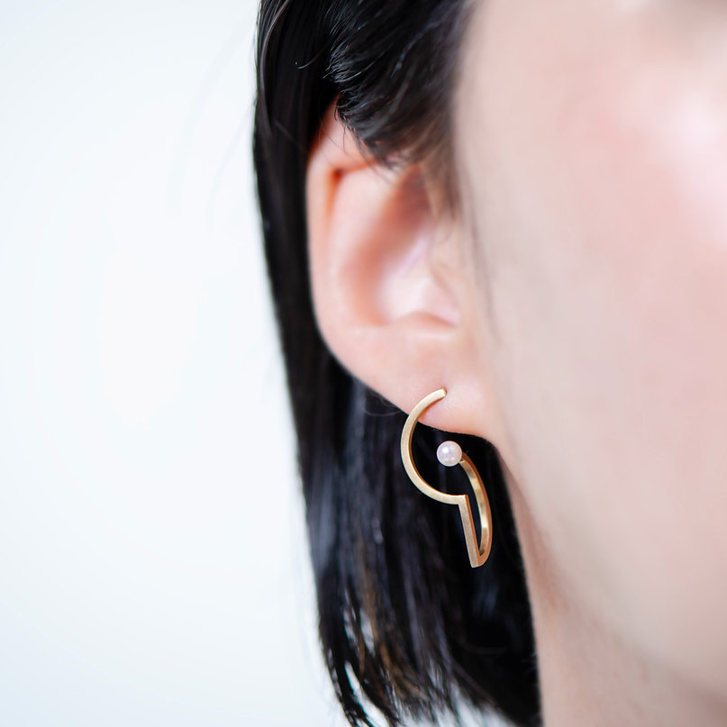 filum Signum collection – abstract single-sided earring. A series of jewelry that explores the flow of lines suspended in mid-air. Every piece is created with thoughtful strokes of the drawing hand and occasionally accented with pearls. The jewelry take on different forms along with the changing perspectives of the viewer. As every piece is one of a kind, the excitement lies in putting together your very own asymmetrical pair.