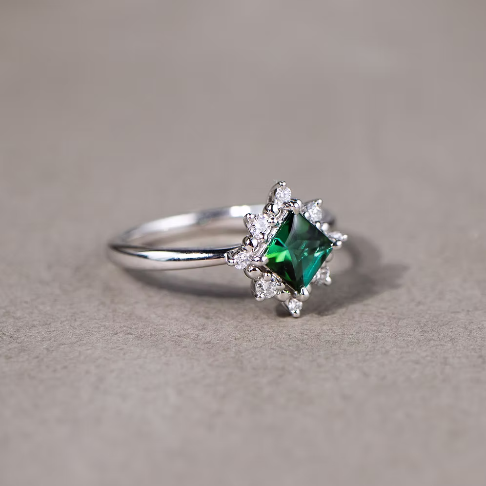 The Stella Ring features a cabochon princess-cut Tourmaline, where its lush forest green hue is softened by gentle contours, revealing a warm, luminous glow.